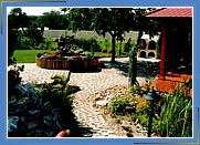 díszkavics szétterítésével, vagy térkő lerakásával -